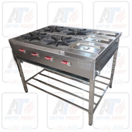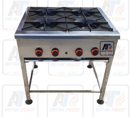 اجاق گاز صنعتی 4 شعله آهنی توسط مهندسین آرتاک پخت با بهترین متریال تولید میگردد و دارای گارانتی یکساله شرکت آرتاک پخت میباشد