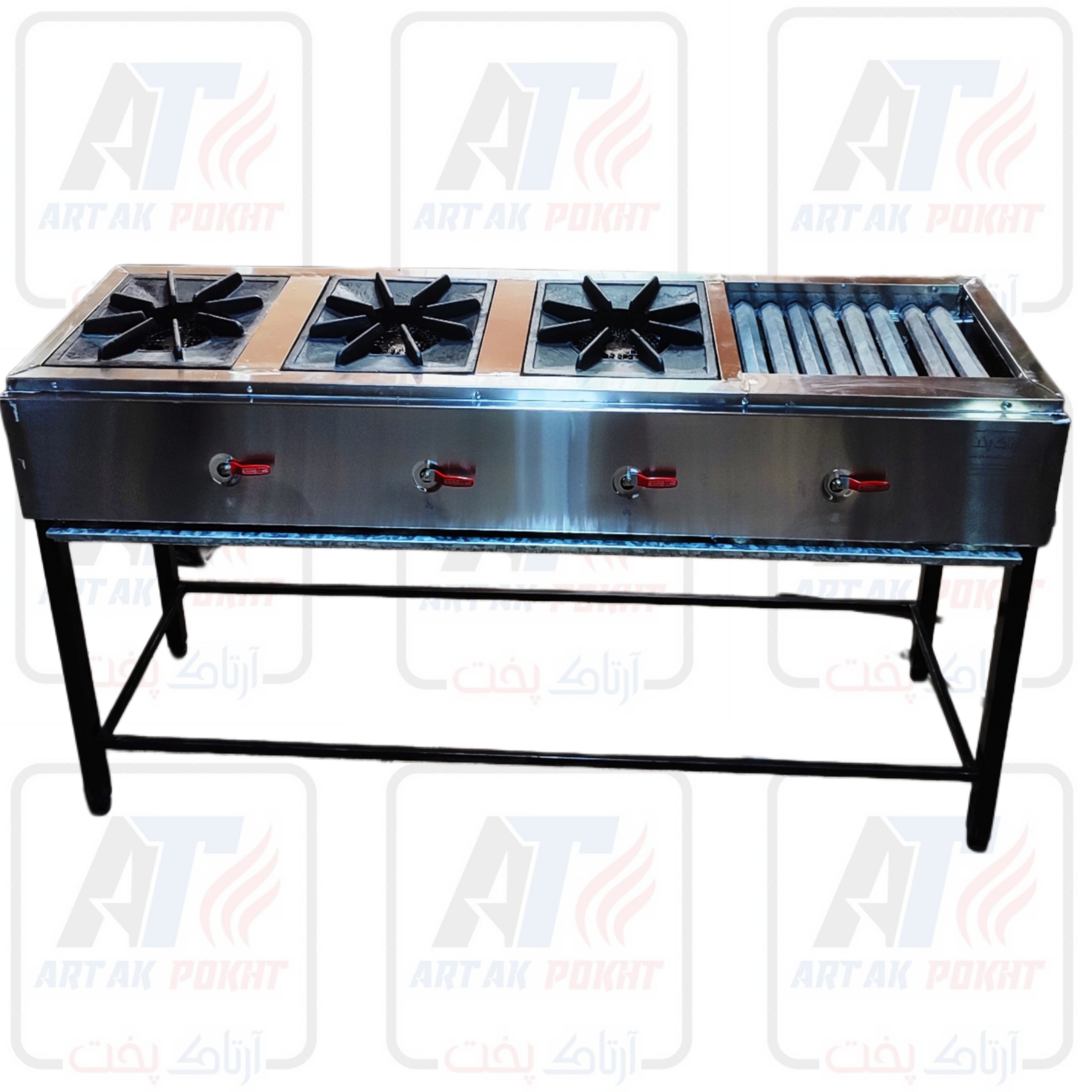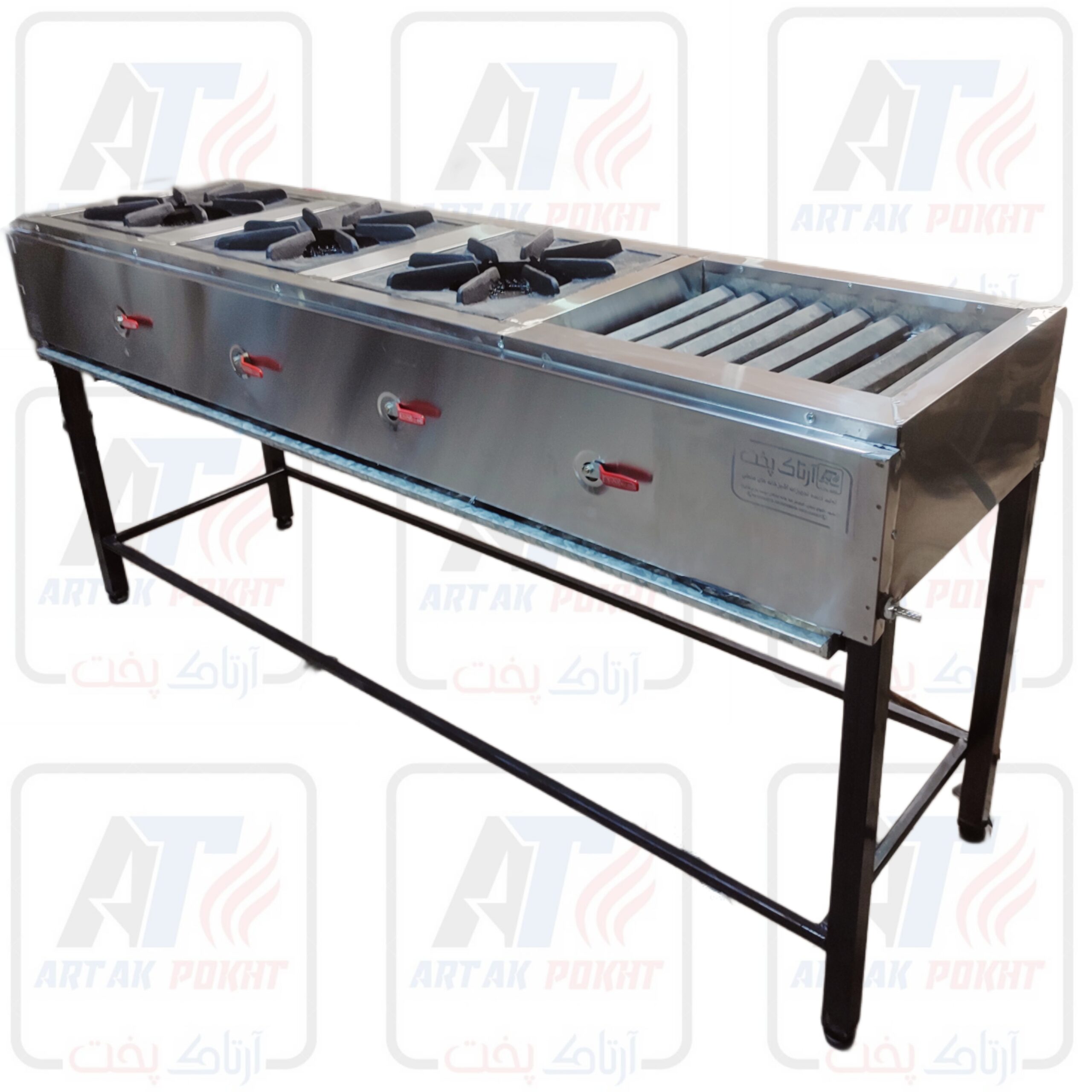 یکی از اساسی ترین و پر کاربرد ترین تجهیزات صنعتی آشپزخانه اجاق گاز های ترکیبی میباشند این دستگاه ضروری مناسب برای پخت انواع خورشت برنج و پخت با ظرفیت های بالا ، و مواردی که نیاز به شعله بزرگ دارند همچنین این اجاق گاز دارای کباب پز 50 سانتی میباشد که مورد مناسب برای پخت برنج و کوبیده رستورانی میباشد