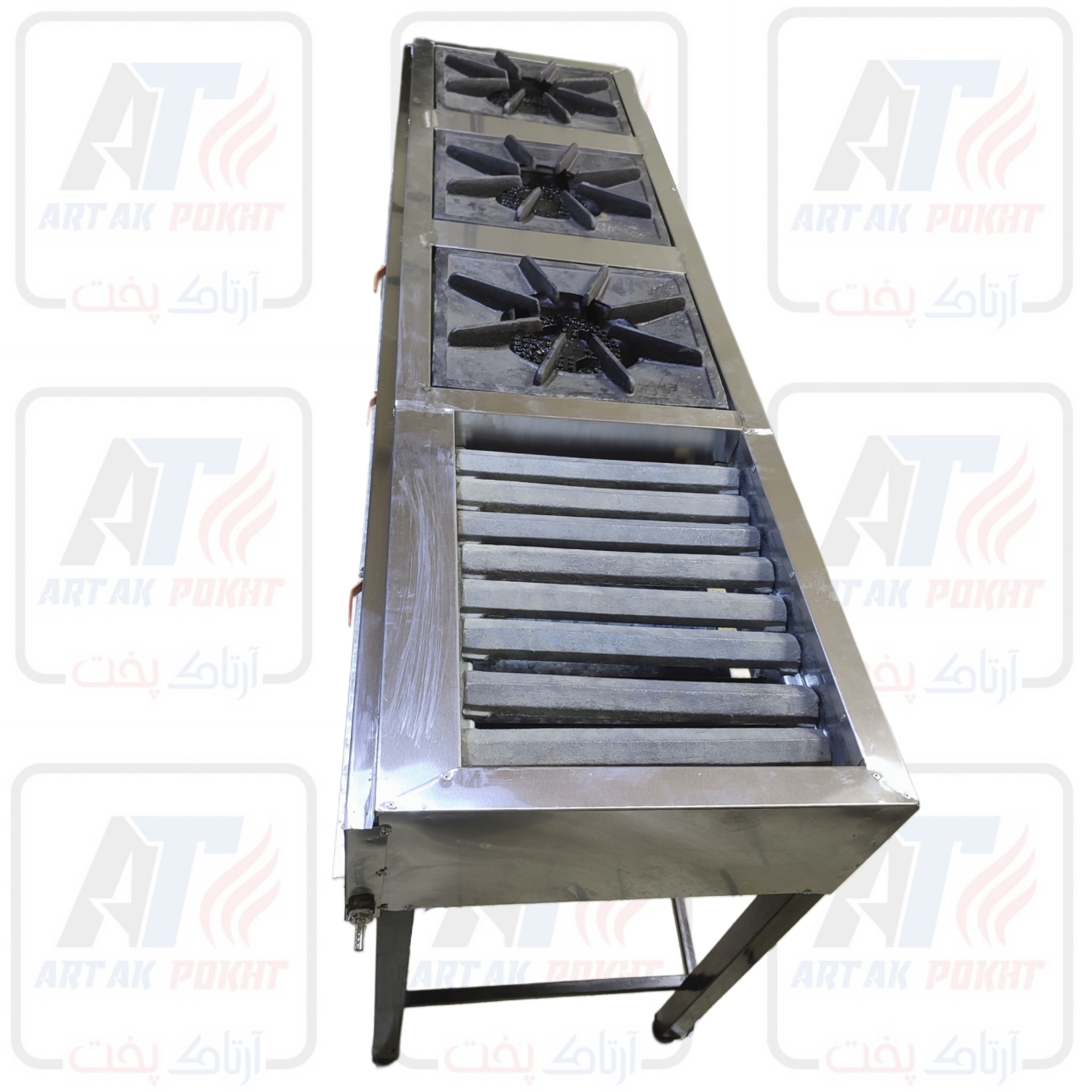 دارای 3 شعله چدنی در ابعاد 36×42 میباشد